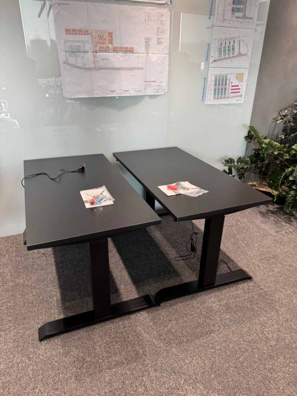 Sestavení stolu zabralo cca půl dne (zhruba 6-8 hodin) od vybalení přes sestavení nohou, vyřešení držáku kabelů, vycentrování nohou na desku s přesností na několik desetin milimetru (nechci mít stůl křivě), finálnímu připevnění všeho k desce pomocí akušroubováku až po ustavení, vyvážení stolu a vyzkoušení. Nakonec vše fungovalo na první pokus. Dokonce si stůl pamatuje nastavení všeho i při odpojení od elektřiny - pračky a myčky by se mohly inspirovat! :-)