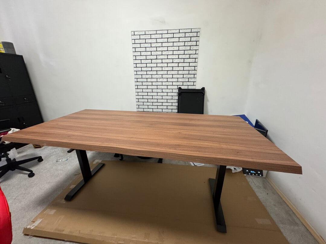 Sestavení stolu zabralo cca půl dne (zhruba 6-8 hodin) od vybalení přes sestavení nohou, vyřešení držáku kabelů, vycentrování nohou na desku s přesností na několik desetin milimetru (nechci mít stůl křivě), finálnímu připevnění všeho k desce pomocí akušroubováku až po ustavení, vyvážení stolu a vyzkoušení. Nakonec vše fungovalo na první pokus. Dokonce si stůl pamatuje nastavení všeho i při odpojení od elektřiny - pračky a myčky by se mohly inspirovat! :-)