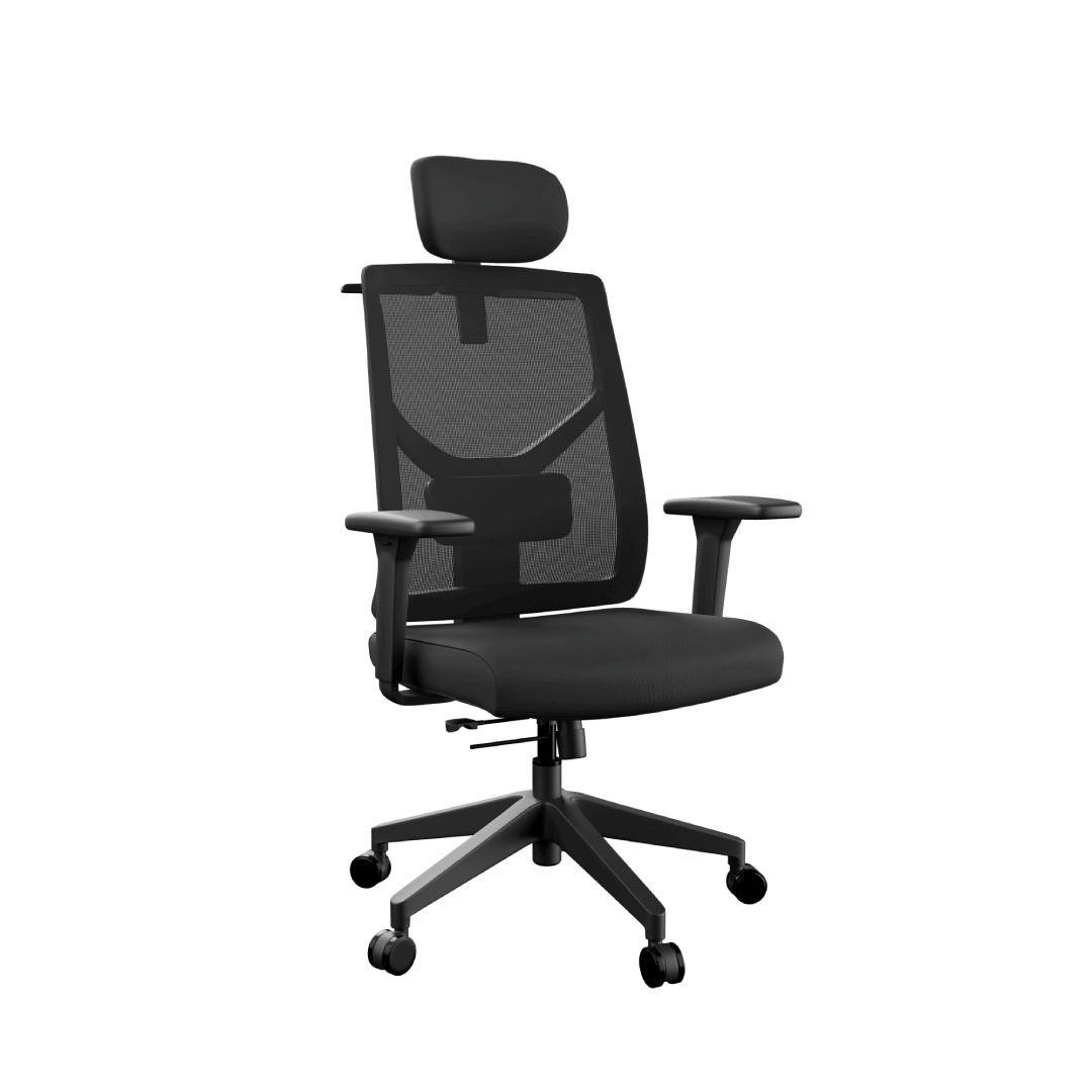 Hĺbkovo nastaviteľná bedrová opierka sa stará o cielenú podporu dolnej časti chrbta, zatiaľ čo výškovo nastaviteľná opierka hlavy poskytuje pohodlie a podporu krčnej chrbtici.