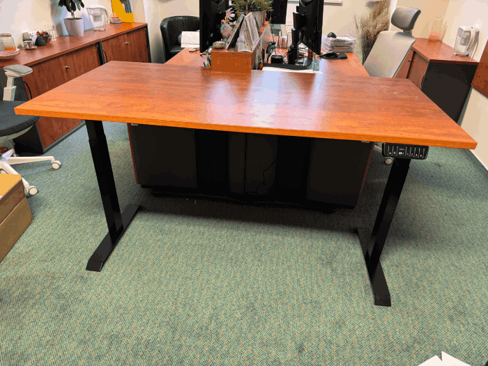 Celkově jsme se stolem spokojeni, zvedací mechanismus funguje a není hlučný.
