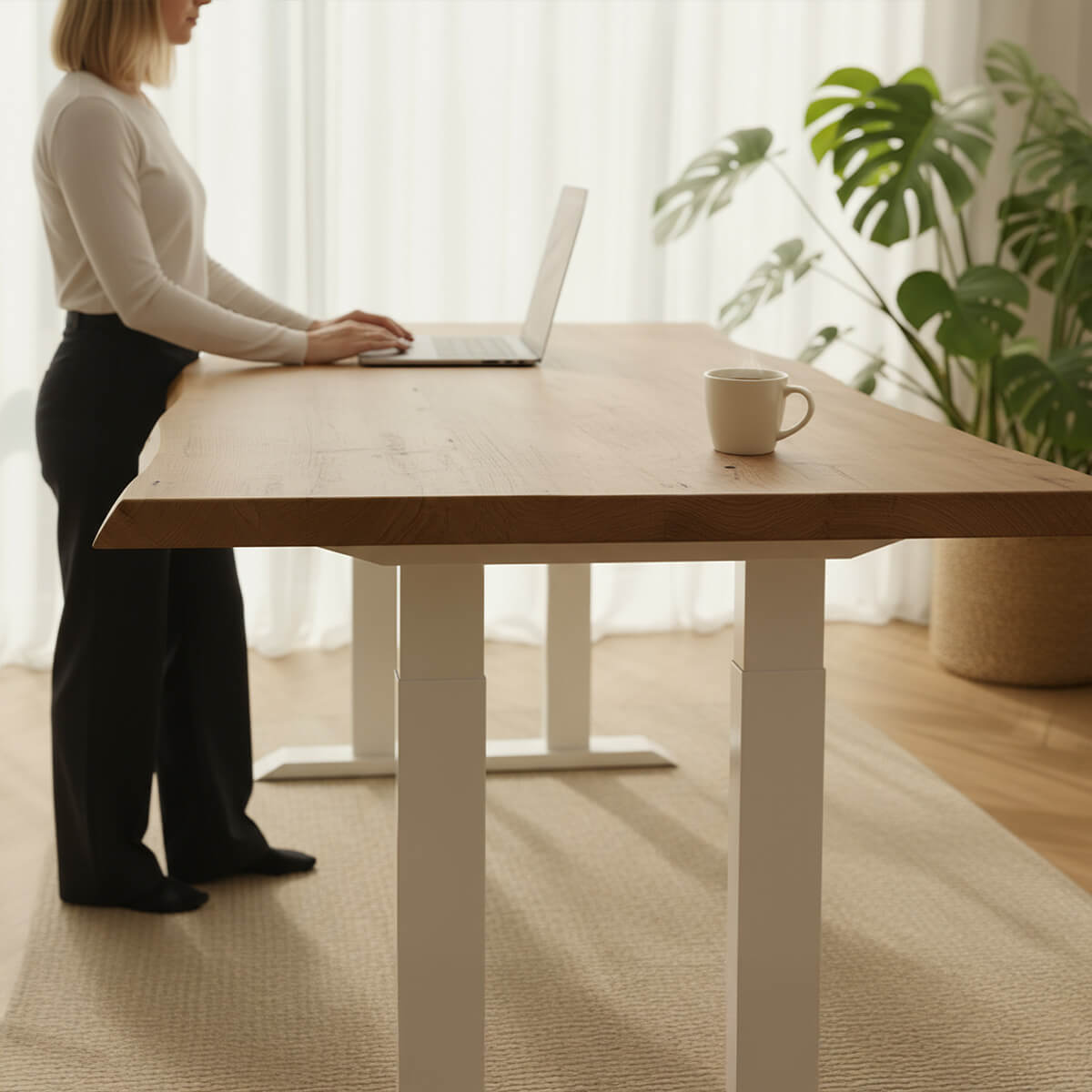 Zatiaľ čo väčšina výškovo nastaviteľných stolov stojí len na dvoch nohách, Liftor Rock ponúka konštrukciu so štyrmi pevnými opornými bodmi. Vďaka tomu ako jediný vo svojej triede dokáže garantovať absolútnu stabilitu v akejkoľvek výške. Žiadne kývanie, žiadne kompromisy – len rovná a pevná pracovná plocha, na ktorú sa môžete spoľahnúť v každej situácii.