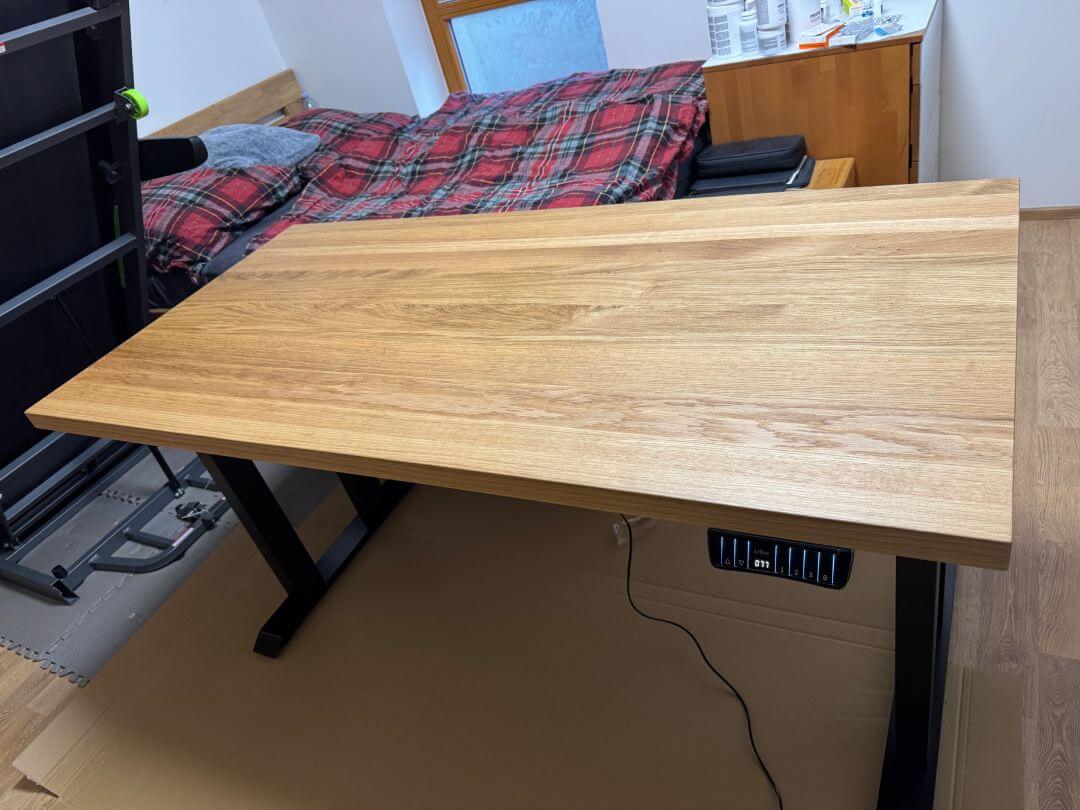 Pevný, kvalitní stůl, nenašel jsem jediný problém v konstrukci ani kvalitě. Deska to je prostě paráda, stůl mám pár dní a pořád ještě desku prohlížím a je to úplně jiná liga než třeba dřevotříska z Ikei. Cena odpovídá kvalitě.