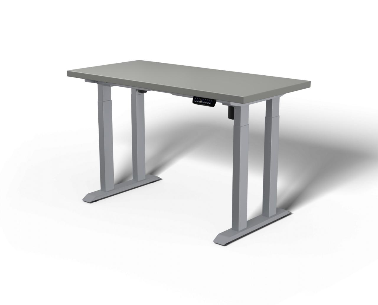 Výškovo nastaviteľný stôl, ktorý verne ctí svoje meno. Pevný ako skala, stabilný za každých okolností. Vďaka štyrom robustným nohám dokáže skutočne zaručiť 100 % stabilitu – nielen pri sedení, ale aj v najvyššej polohe alebo pri jednostrannom zaťažení. Výšku stola je možné nastaviť v rozmedzí 72–120 cm, čo zodpovedá ergonómii pre postavy vysoké 150 – 190 cm.